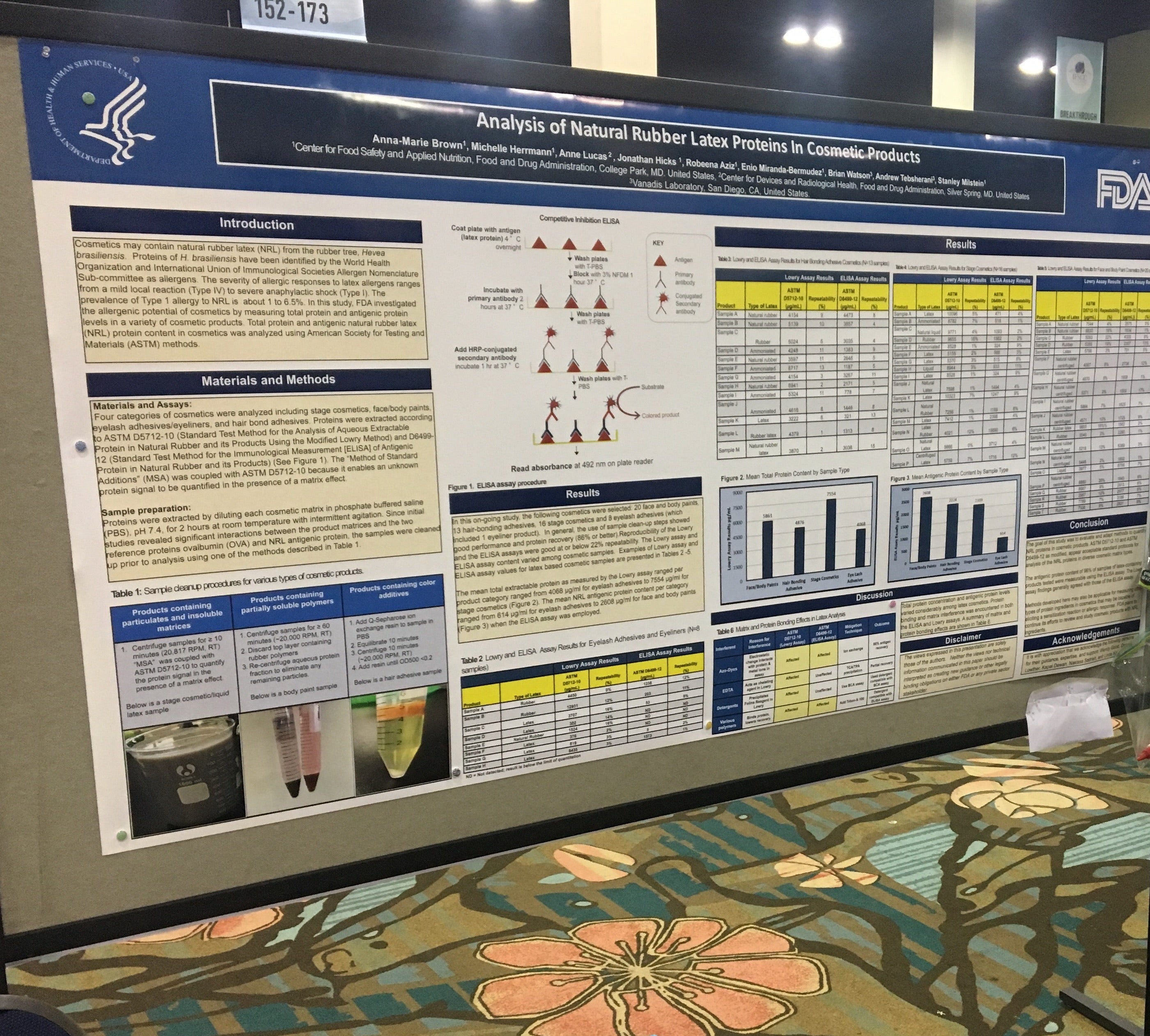 In 2014 Vanadis Labs began working with the Food and Drug Administration (FDA) to develop tests that could determine if harmful latex antigenic proteins were present in several types of products found on the shelves of major retailers. These products included hair bond adhesives, eyelash adhesives, liquid eyeliners, hair replacement adhesives, face and body paints, and stage cosmetics.