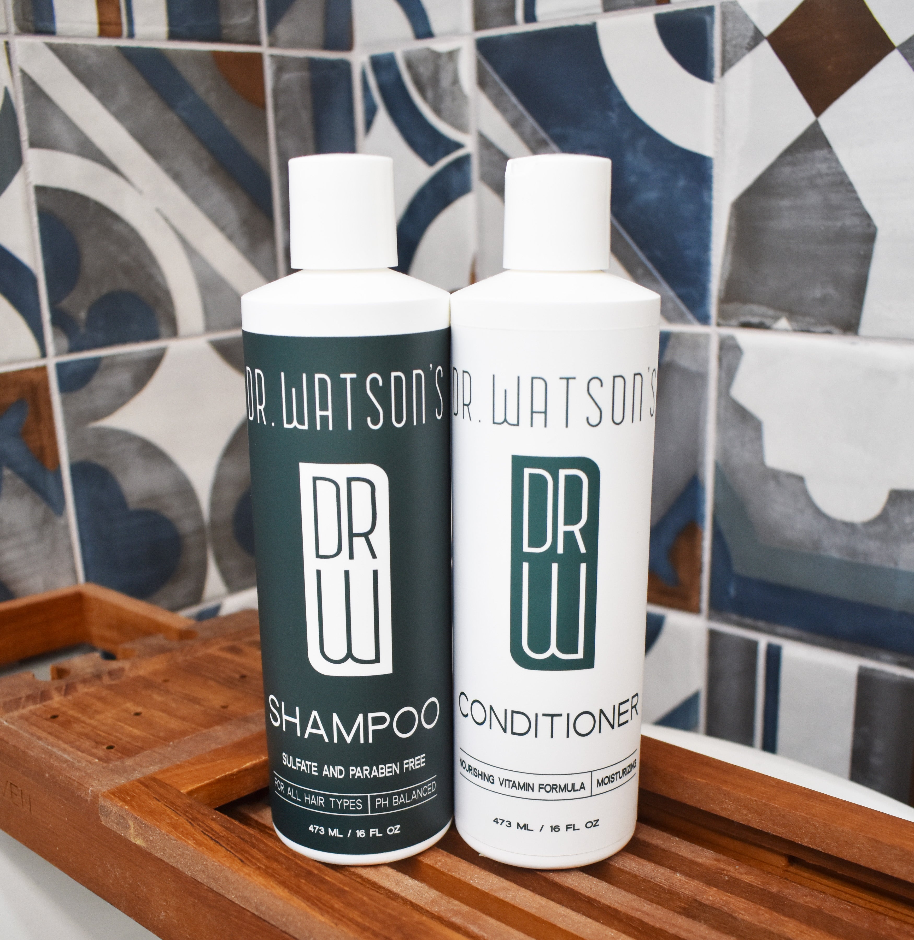 Dr. Watson’s shampoo cleanses with mild surfactants to gently wash your hair, while keeping important natural oils. Our unique natural blend of scents eucalyptus, rosemary, sage and basil, will leave your hair feeling zen like. We do not use harsh ingredients like sodium lauryl sulfate (SLS) and our shampoo is formulated near the natural pH of human hair to be as neutral as possible.